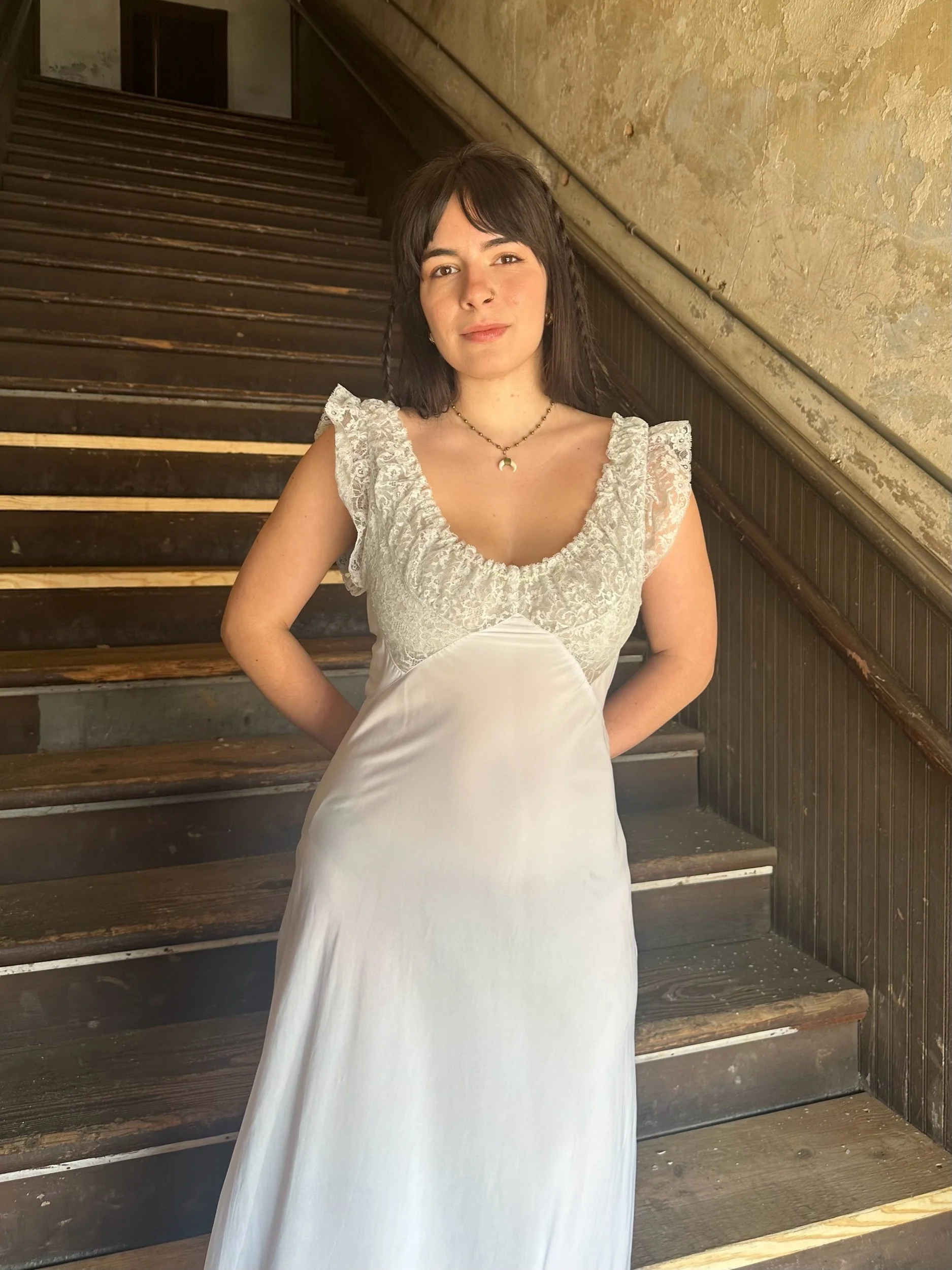 an exceptionally perfect periwinkle slip loveeee the lace sleeves on this one