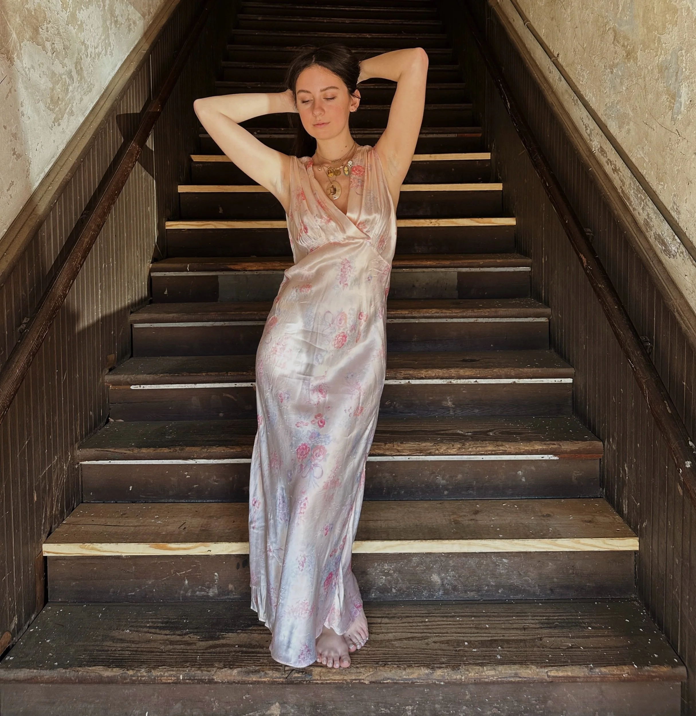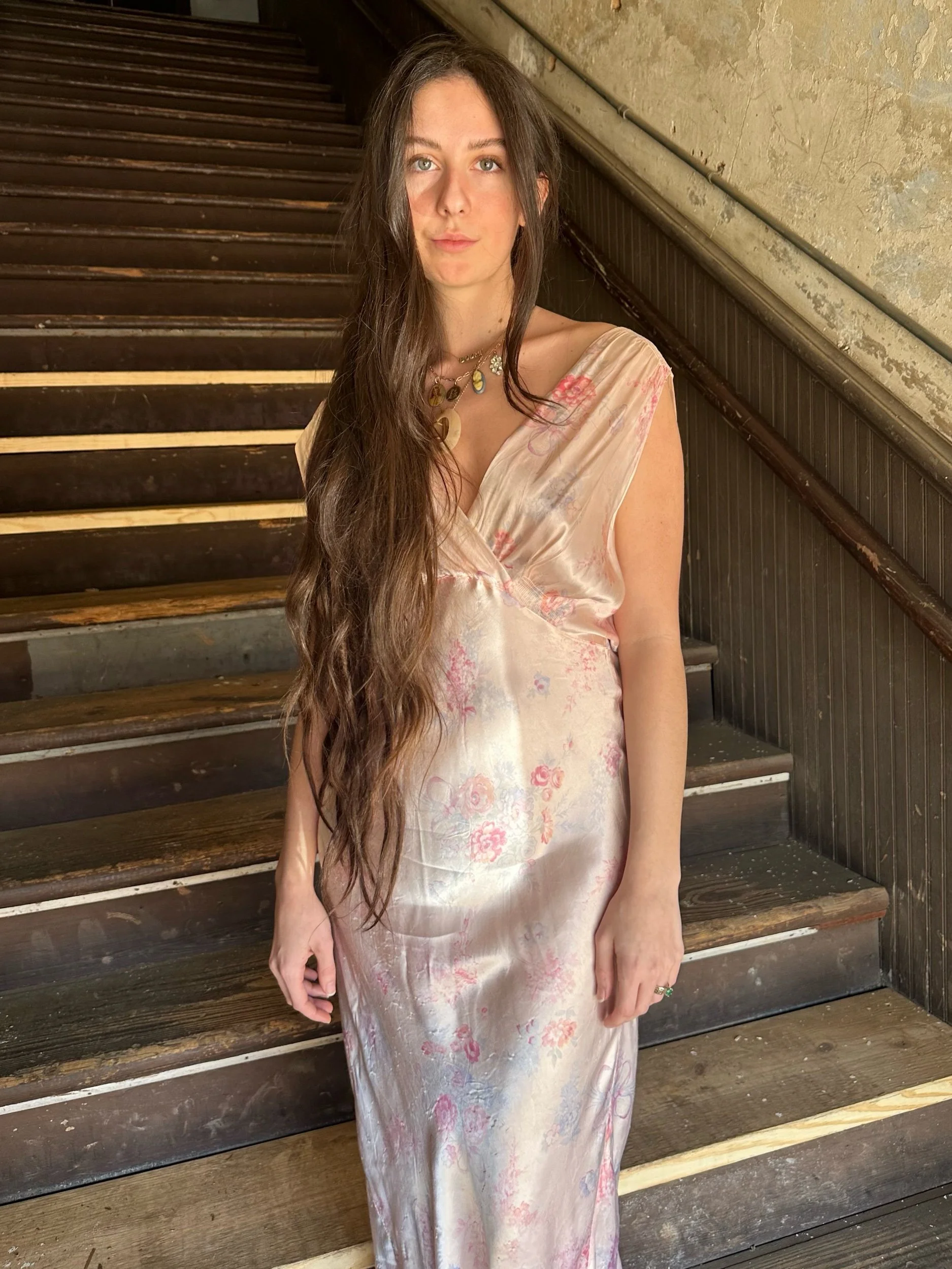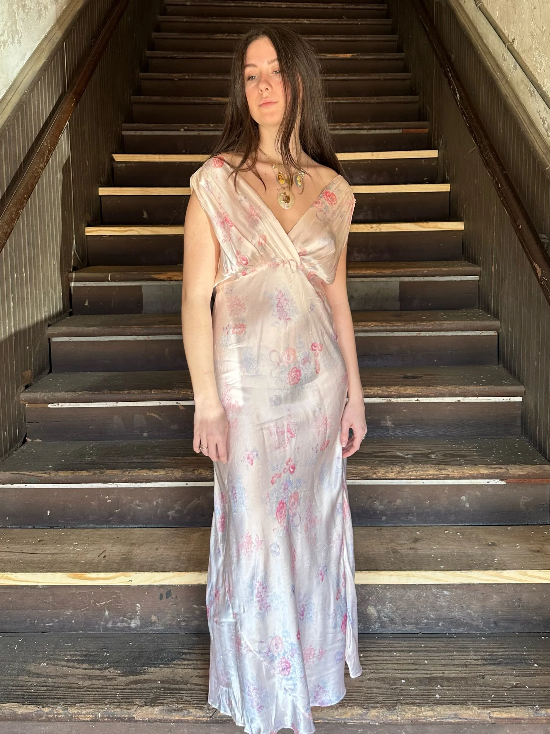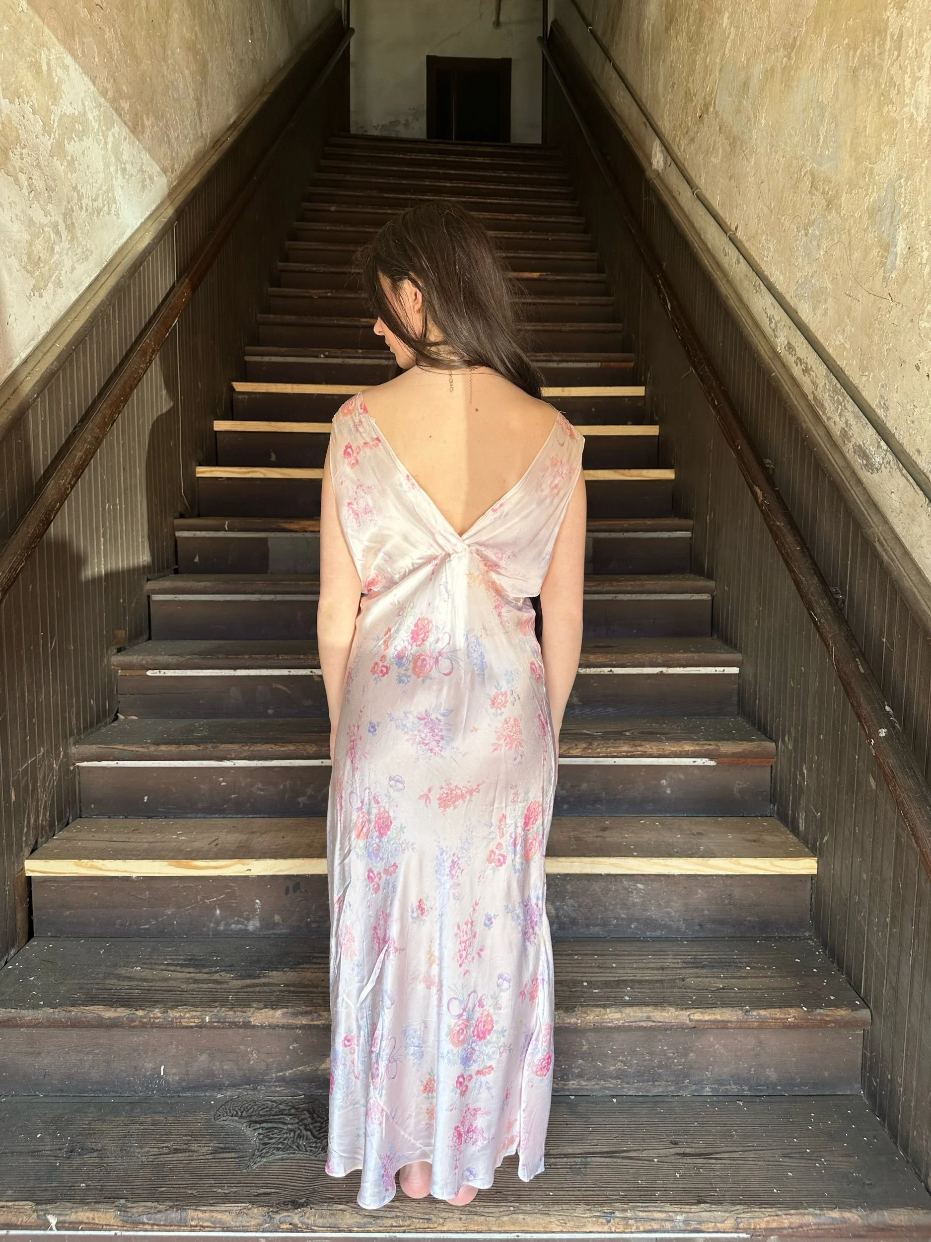 a classic bias cut silhouette with a dainty floral bow pattern super cutie